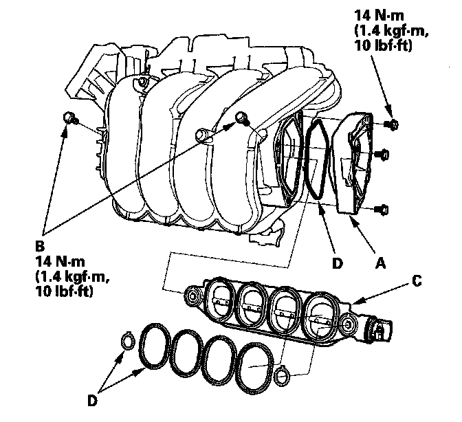 4. Install the parts in the reverse order of removal with new O-rings (D).