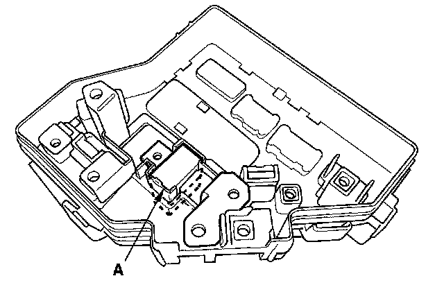 5. Turn the housing over again. Using two flat-tip screwdrivers, release the tabs (A), and pry up the fuse/relay box base (B) from the fuse/relay box housing (C).