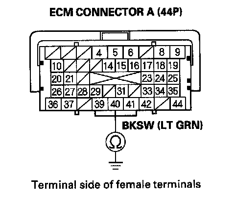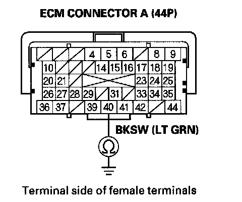 8. Check for continuity between ECM connector terminal A40 and body ground.