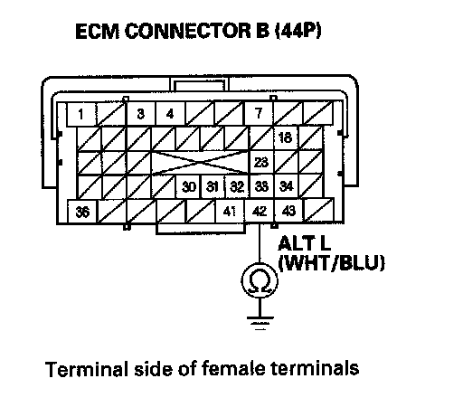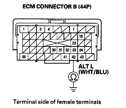 13. Check for continuity between ECM connector terminal B42 and body ground.