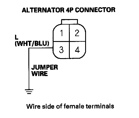 17. Connect alternator 4P connector terminal No.3 and body ground with a jumper wire.