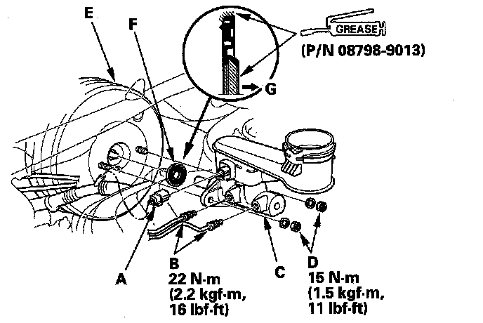 ^ Check the pushrod clearance before installing the master cylinder, and adjust it if necessary.
