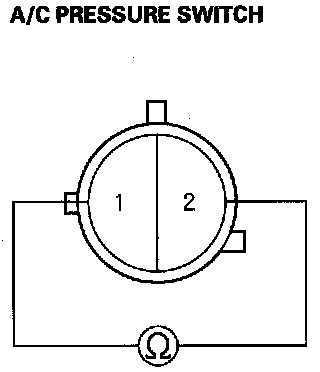 7. Check for continuity between the No. 1 and No. 2 terminals of the A/C pressure switch.