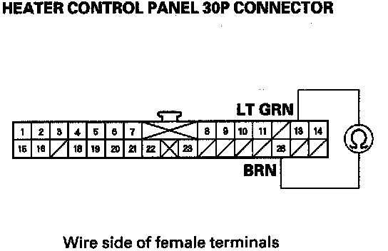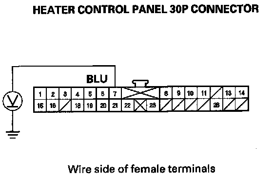 11. Measure the voltage between the No. 7 terminal of the heater control panel 30P connector and body ground.