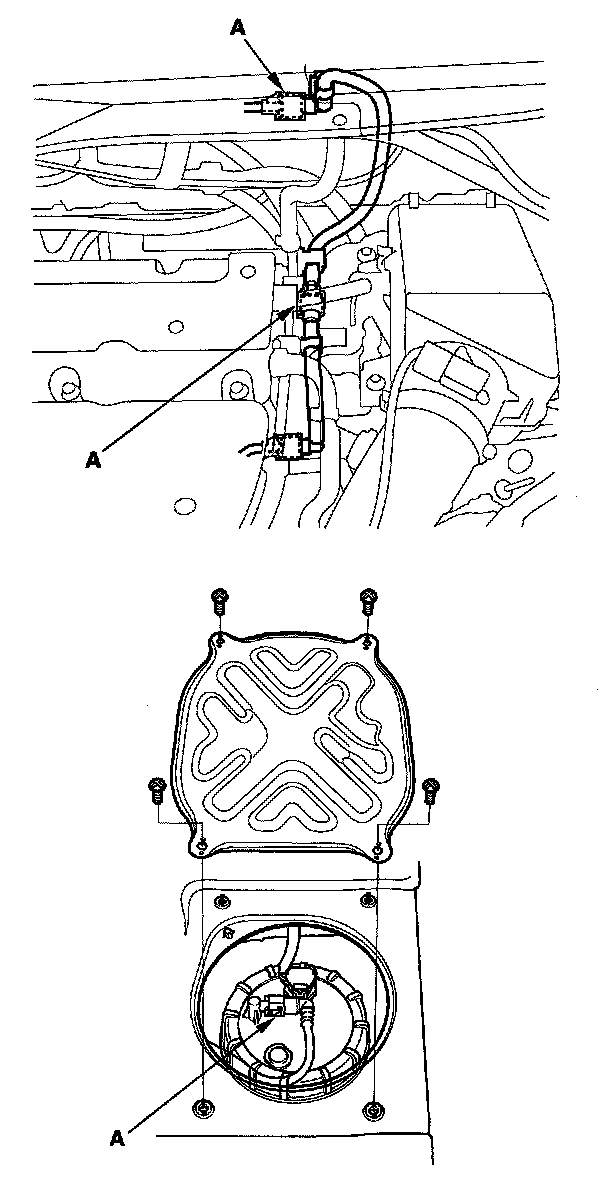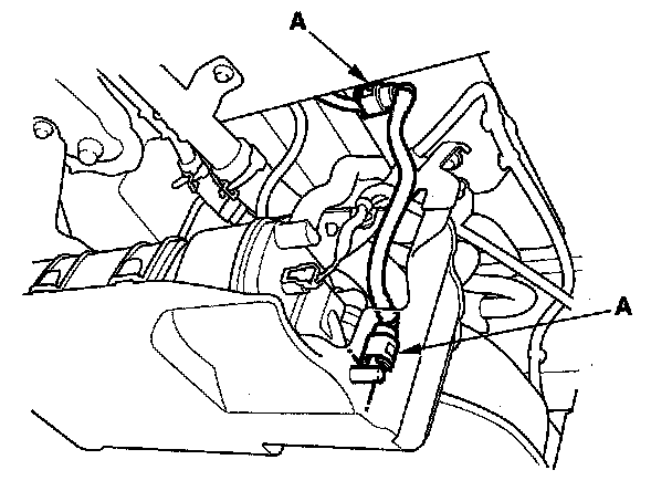 5. To prevent damage and keep foreign matter out, cover the disconnected connector and line ends with plastic bags (A).