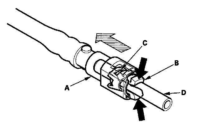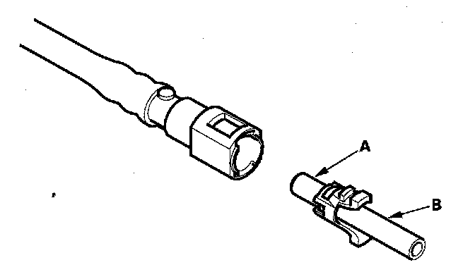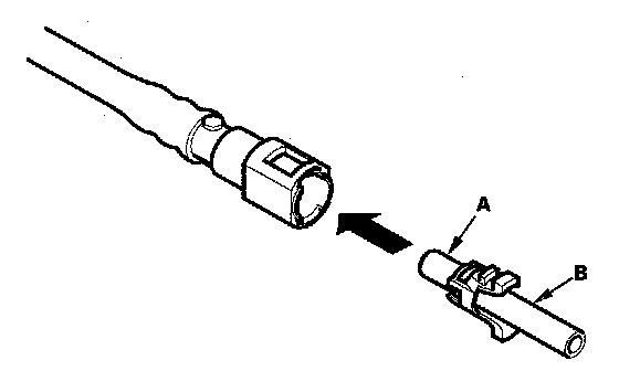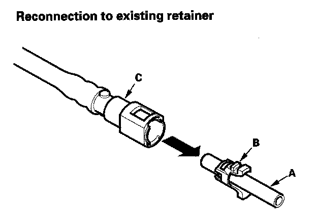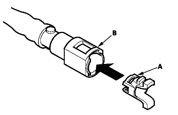 2. Insert a new retainer (A) into the connector (B) if the retainer is damaged, or after: