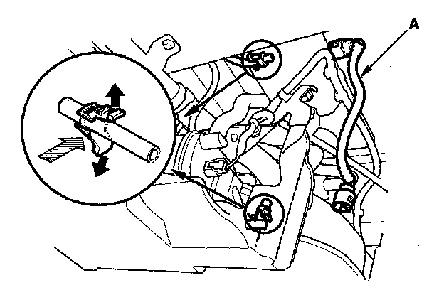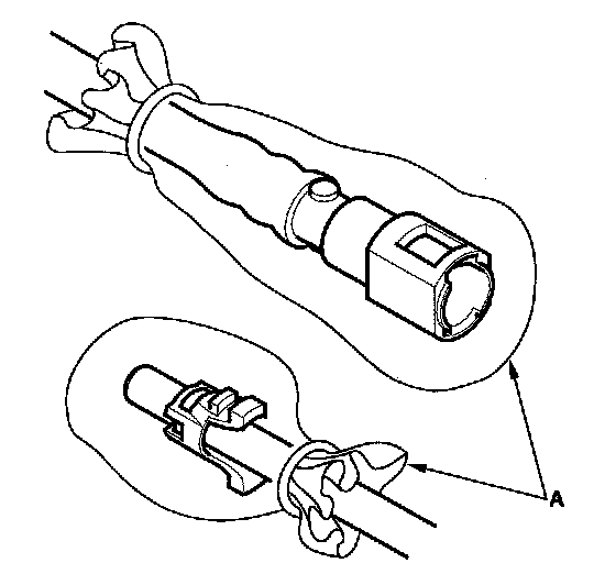 3. Before connecting a new fuel line/quick-connect fitting assembly (A), remove the old retainer from the mating line.