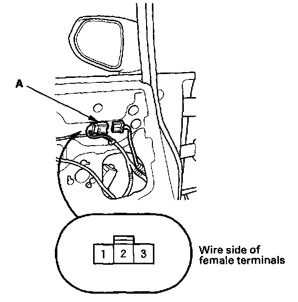 2. Disconnect the 3P connector (A) from the power mirror actuator