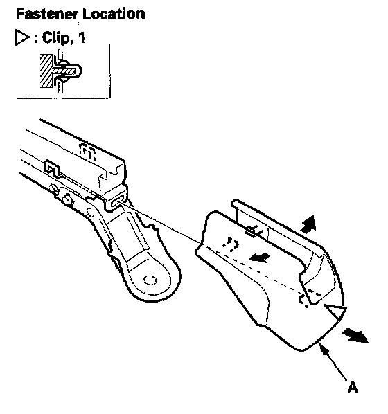 4. If necessary, detach the clip, then remove the inner seat weight sensor rail cover (A).