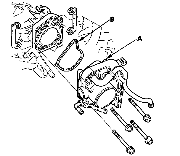 4. Install the throttle body (A) with a new O-ring (B), if it was removed.