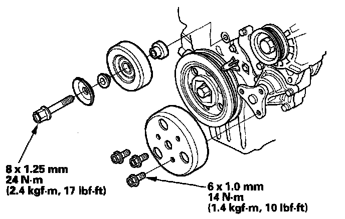 3. Remove the water pump pulley and idler pulley.