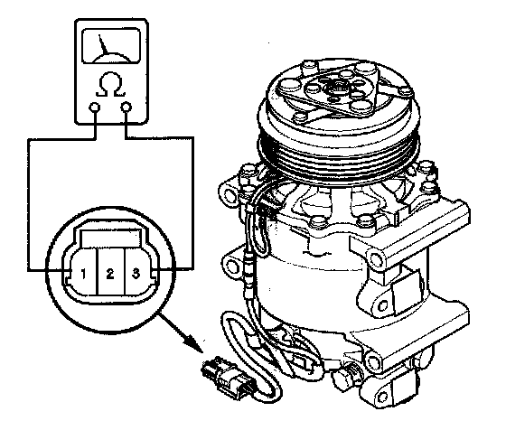 4. Check for continuity between the A/C compressor clutch connector No. 1 and No. 3. If there is no continuity, replace the thermal protector.