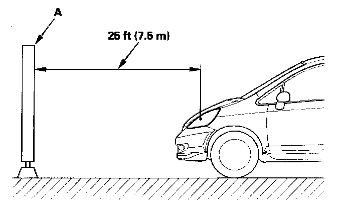 2. Park the vehicle 25 ft (7.5 m) away from a wall or a screen(A)