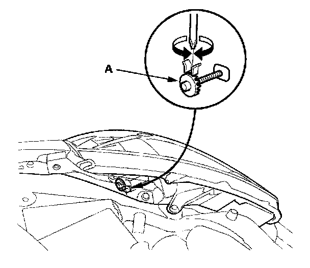 5. If necessary, open the hood and adjust the headlights to local requirements by turning the vertical adjuster (A).