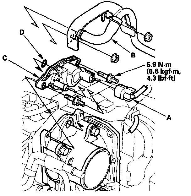 3. Install the parts in the reverse order of removal with a new O-ring (D).