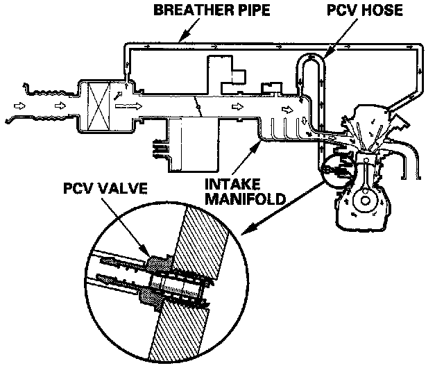 The PCV valve prevents blow-by gasses from escaping into the atmosphere by venting them into the intake manifold.