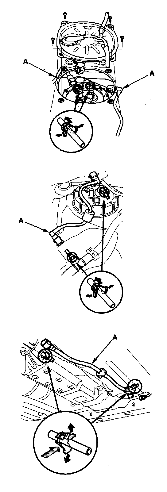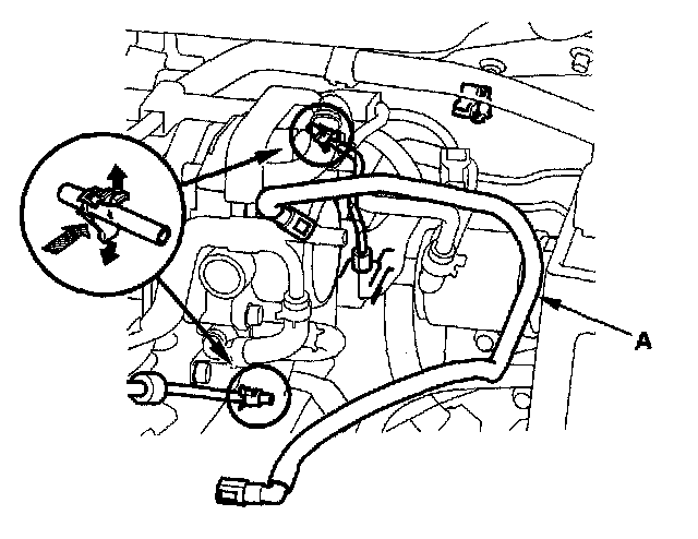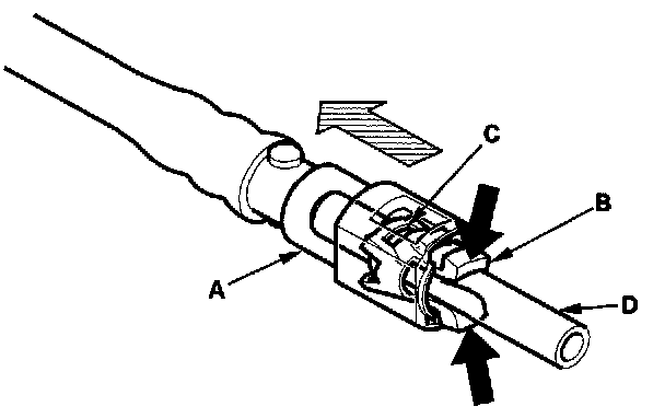 3. Before connecting a new fuel tube/quick-connect fitting assembly (A), remove the old retainer from the mating line.