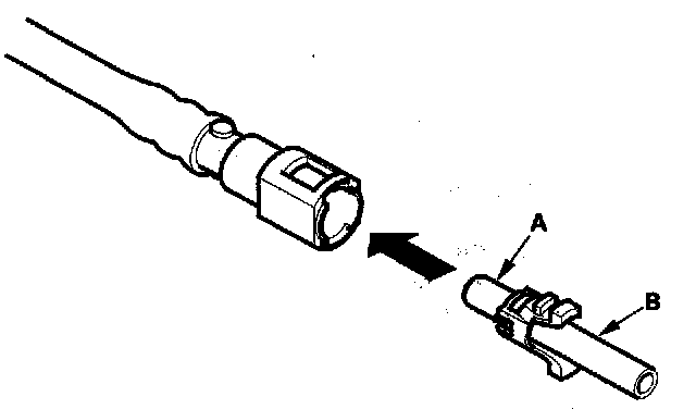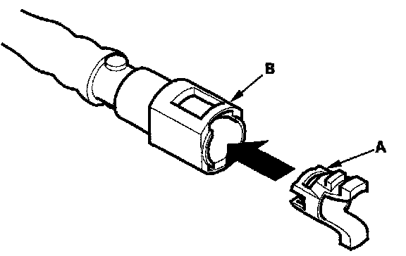 2. Insert a new retainer (A) into the connector (B) if the retainer is damaged, or after: