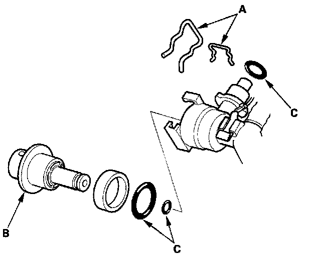 5. Install the parts in the reverse order of removal with new O-rings (C).