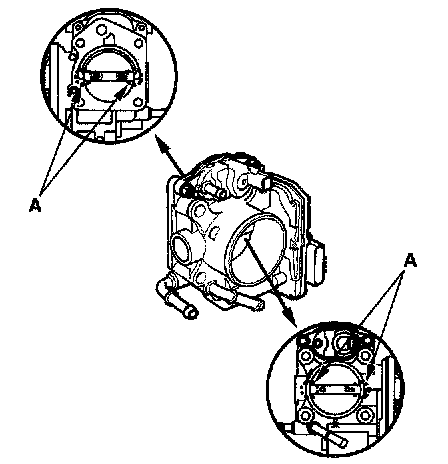 - To avoid removing the molybdenum coating, do not clean the bearing area of the throttle shaft (A).