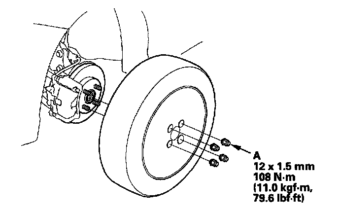 2. Remove the wheel nuts (A) and front wheel.