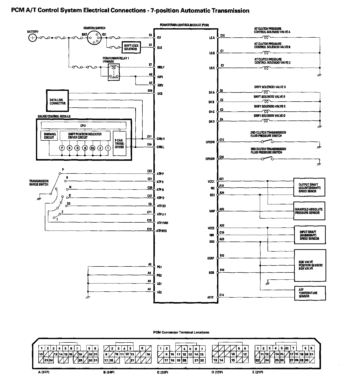 PCM A/T Control System Electrical Connections - 7-position Automatic Transmission: