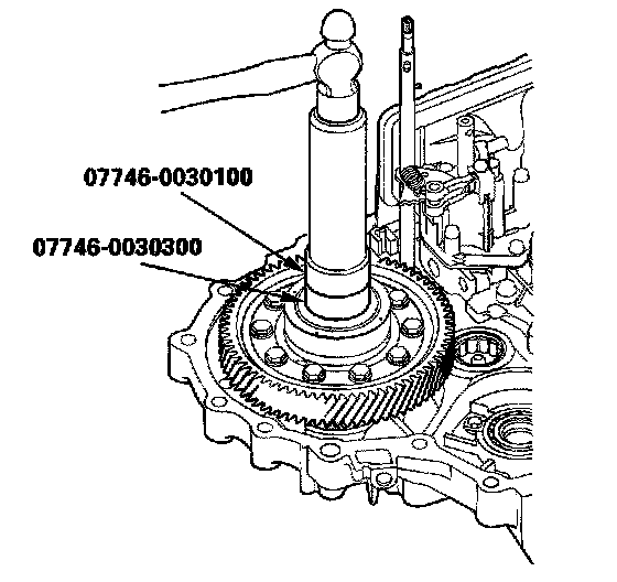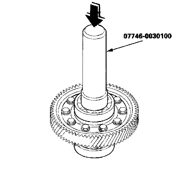 3. Drive the differential assembly securely in the torque converter housing so there is no clearance between the bearing, the spacer, and the housing with the special tool.