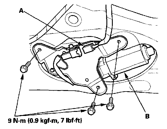 3. Disconnect the 5P connector (A) from the wiper motor (B).