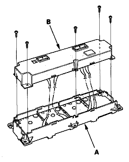 2. Remove the self-tapping screws, then carefully separate the A/C control panel display (A) from the control panel (B). Do not kink or pull on the wires between the display and the control panel. Do not touch the electronic components on the printed circuit board in the control panel.