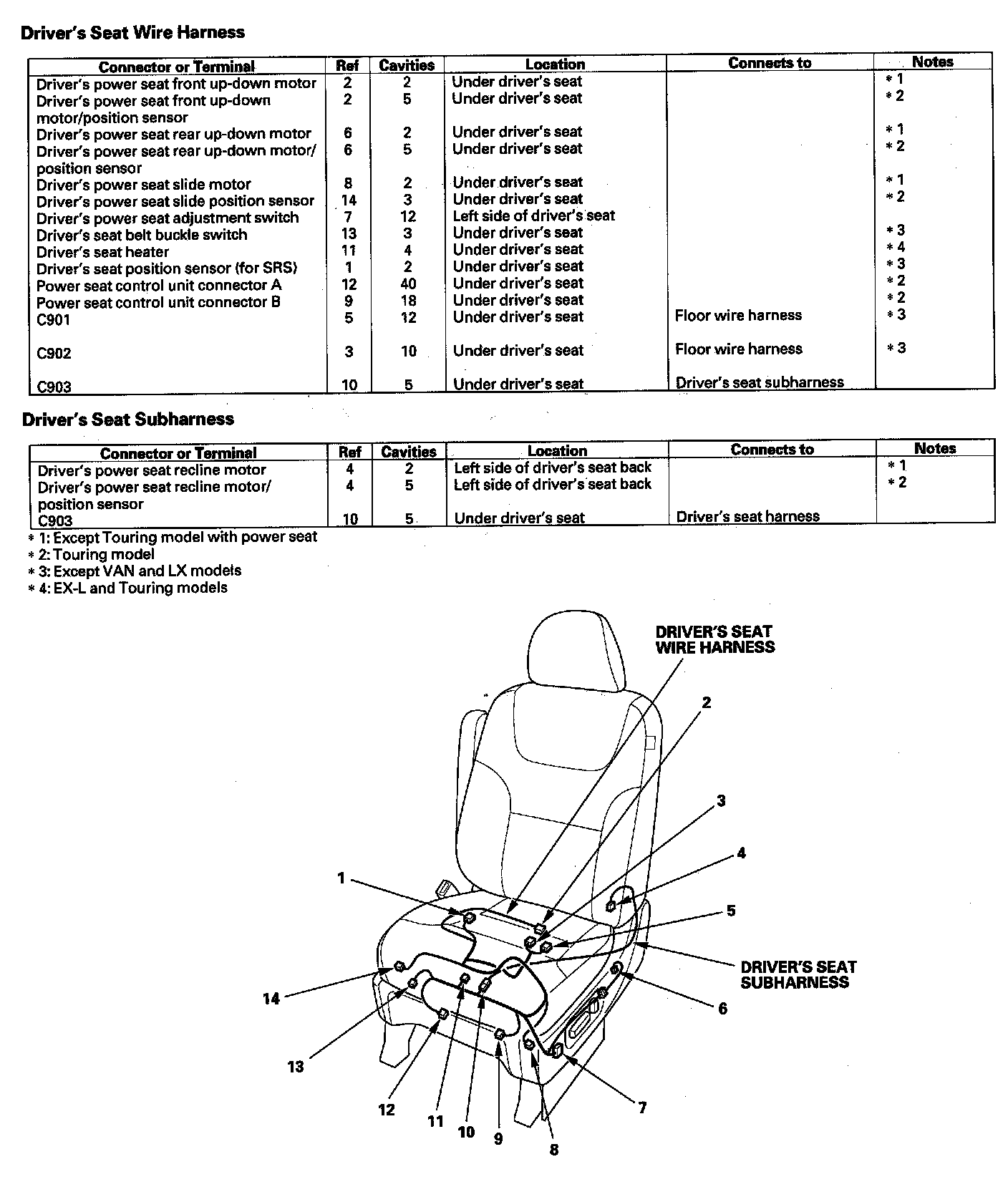 Driver's Seat Wire Harness/Driver's Seat Subharness: