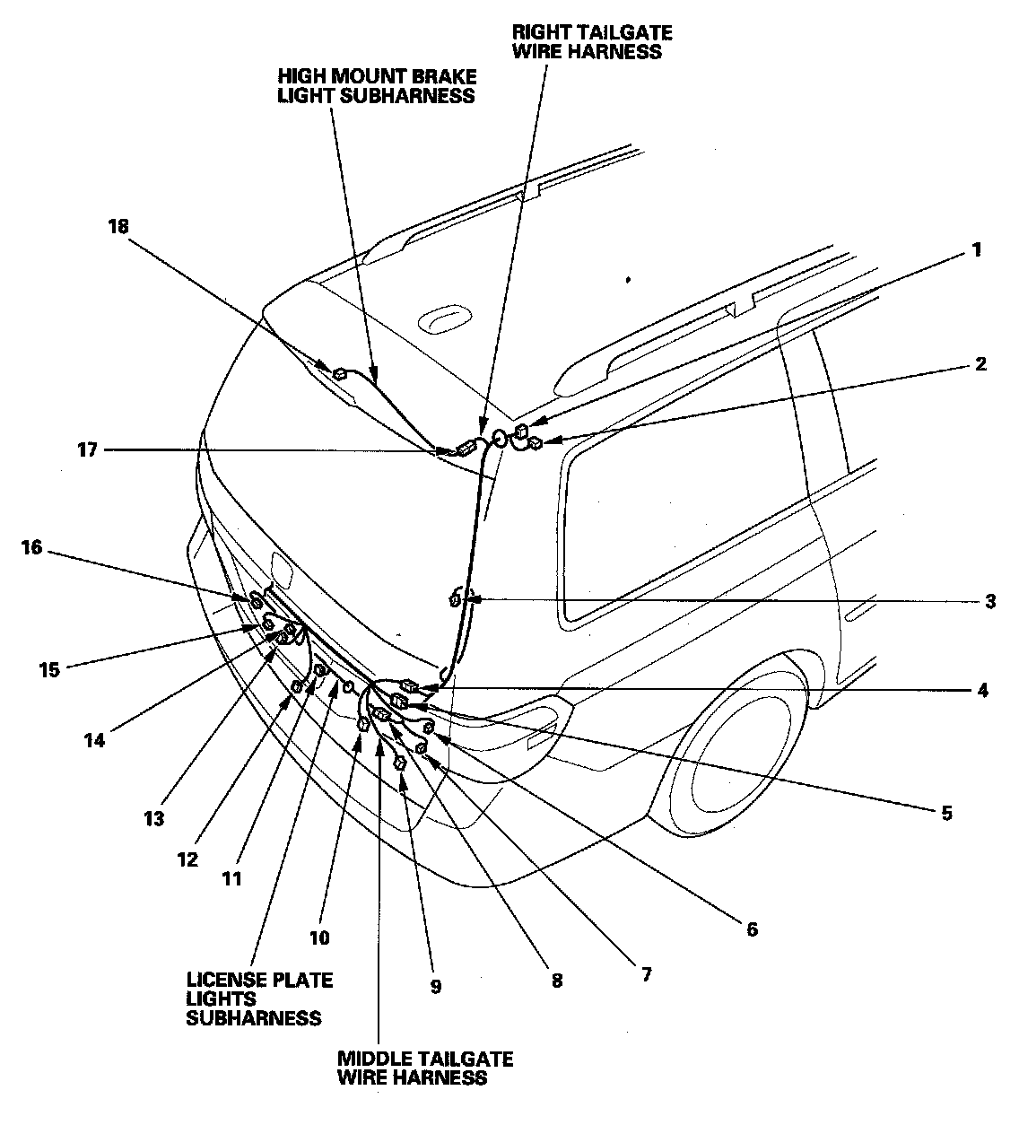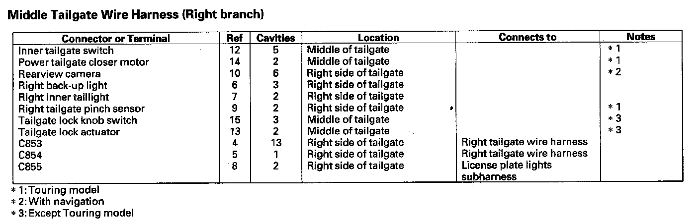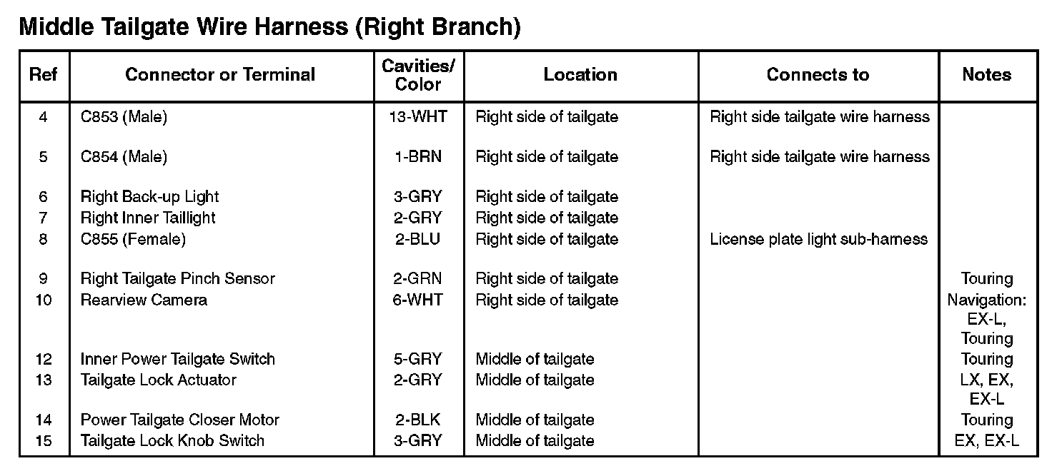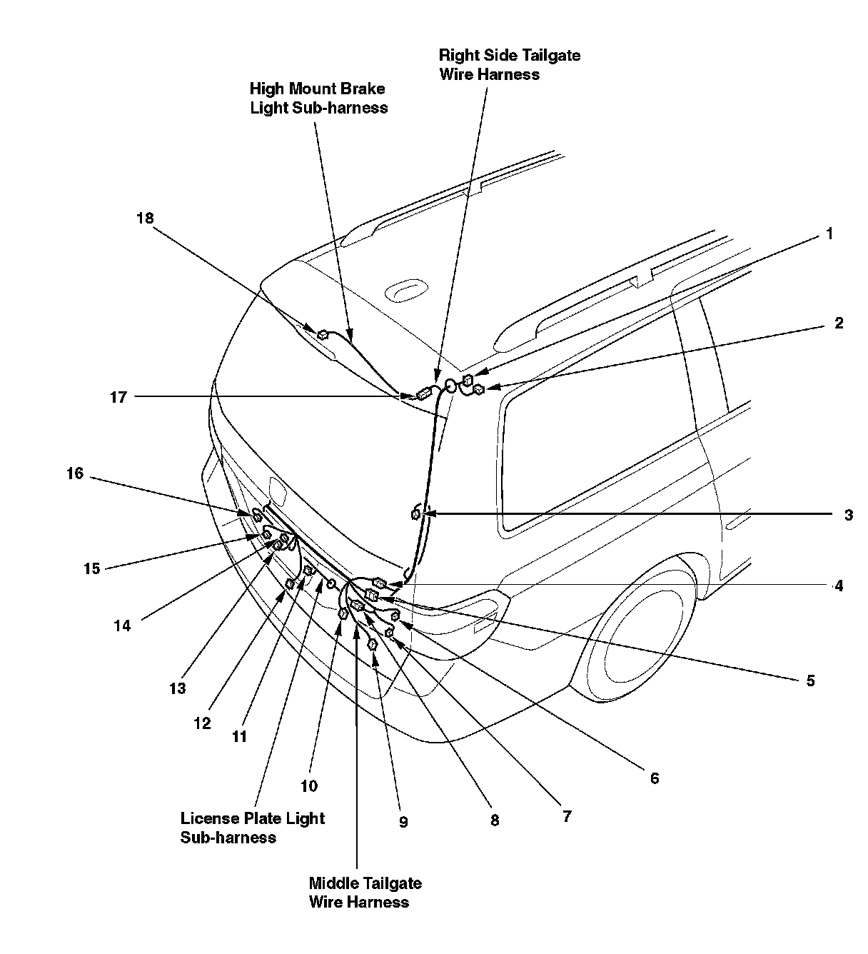 Middle Tailgate Wire Harness (Right Branch):