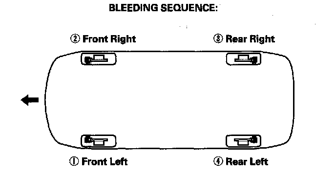 NOTE: Bleed the calipers or the wheel cylinders in the sequence shown.