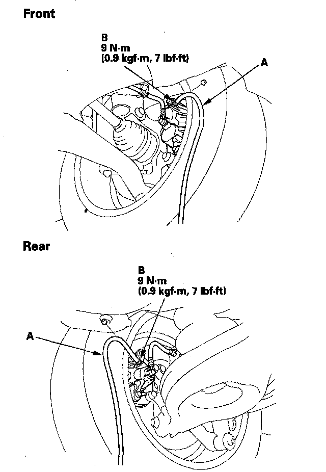 4. Attach a length of clear drain tube (A) to the bleed screw (B), then, loosen the bleed screw to allow air to escape from the system. Then tighten the bleed screw securely.