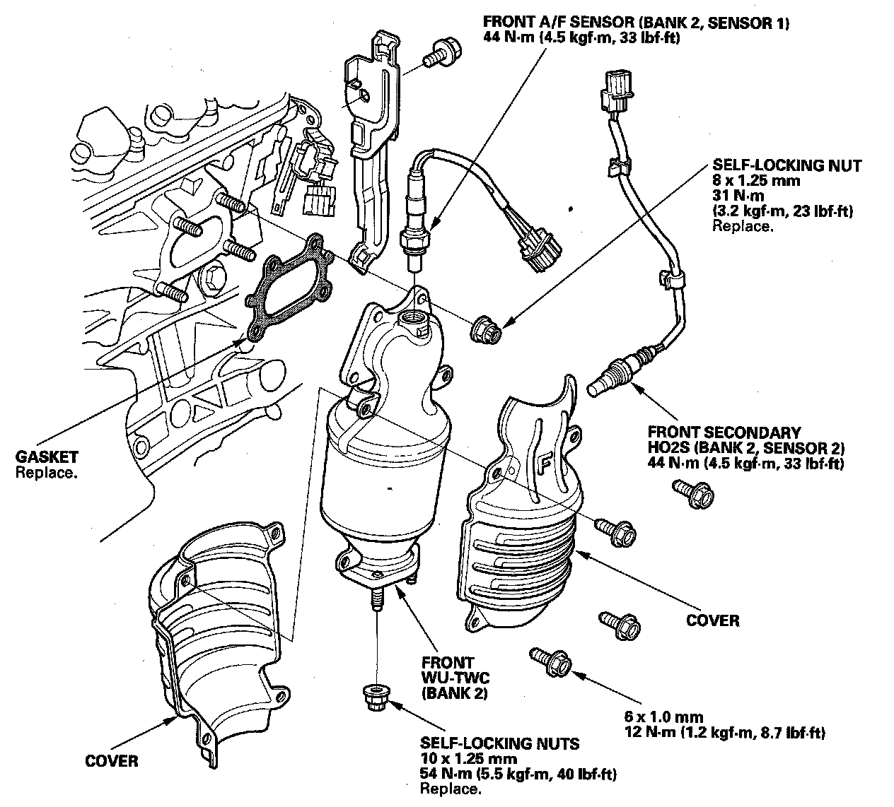 4. Carefully install the front WU-TWC (Bank 2), and tighten the nuts in a crisscross pattern in two or three steps.