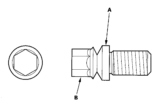7. Tighten the shear bolts (A) until the hex heads (B) twist off.