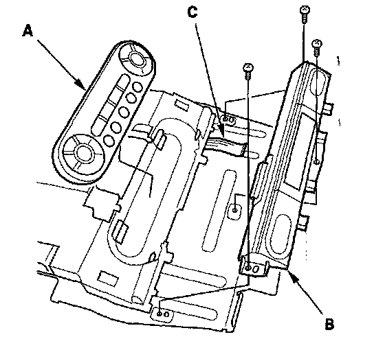 2. Remove the mounting bolts, disconnect the connector (A)from the rear controller and screen.