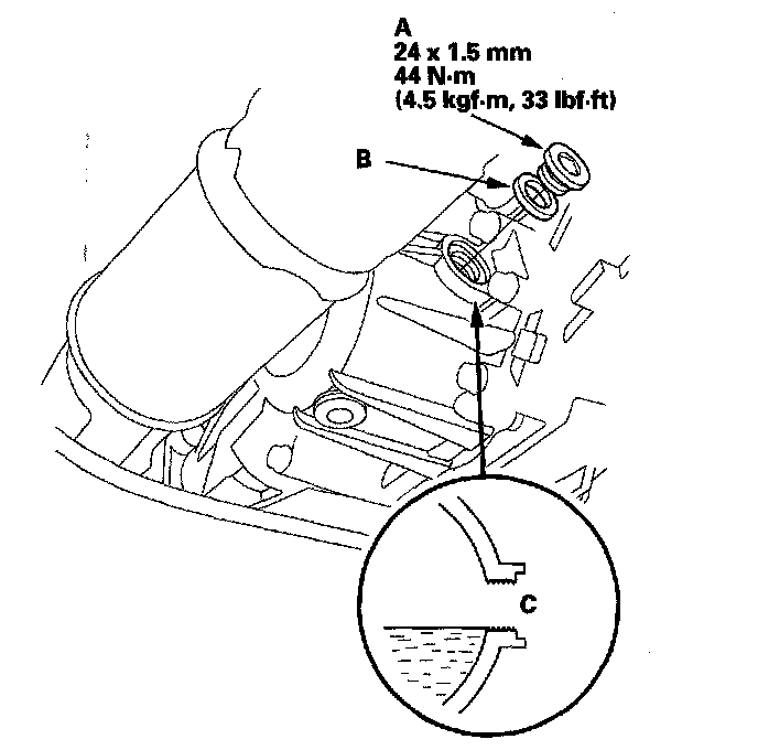 7. Install the filler plug and a new sealing washer. Tighten the filler plug to the specified torque.
