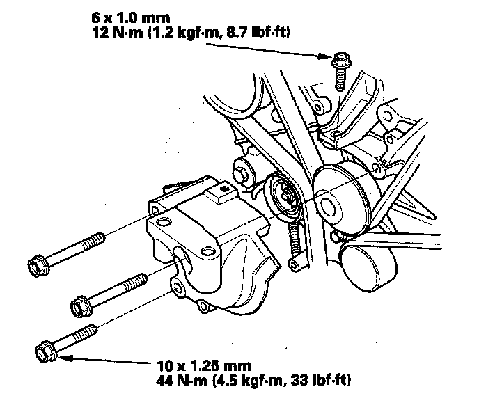 4. Loosely install the idler pulley with a new idler pulley bolt so the pulley can move but does not come off.
