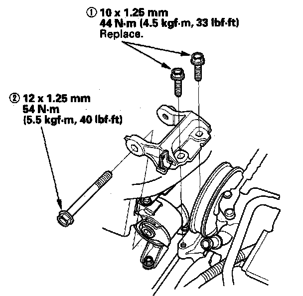 17. Install the upper half of the side engine mount bracket, then tighten the mounting bolts in the numbered sequence shown.