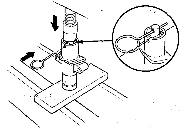 8. Use a hydraulic press to slowly compress the auto-tensioner. Insert a 2.0 mm (0.08 inch) pin through the housing and the rod.