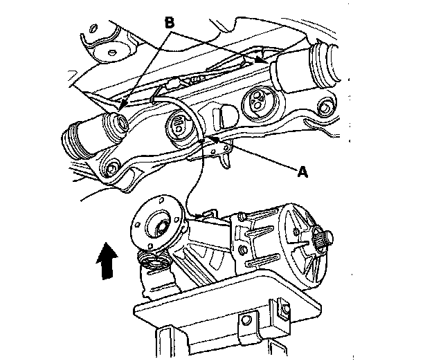 3. Raise the rear differential to the mounting level, then install the mounting bolts (A) and washer (B).