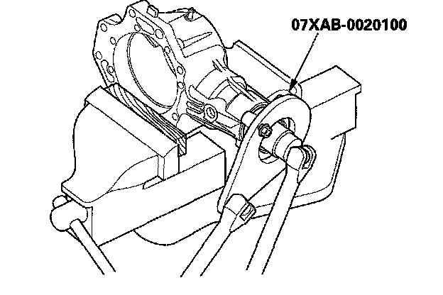 6. Secure the transfer housing in a bench vise with soft jaws. To prevent damage to the transfer housing, always use soft jaws or equivalent materials between the transfer housing and the vise.