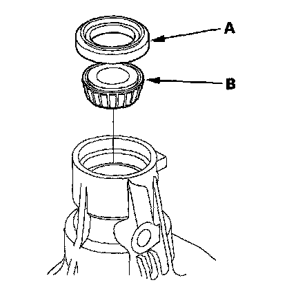 11. Remove the oil seal (A) and tapered roller bearing (B) from the transfer housing.