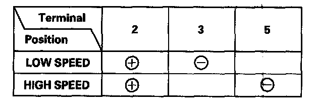 4. Connect an analog voltmeter between the No. 4 (+) and No. 1 (- ) terminals, and run the motor at low or high speed. The voltmeter should indicate 0 V and 4 V or more alternately.