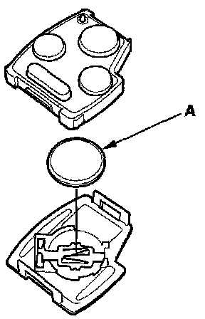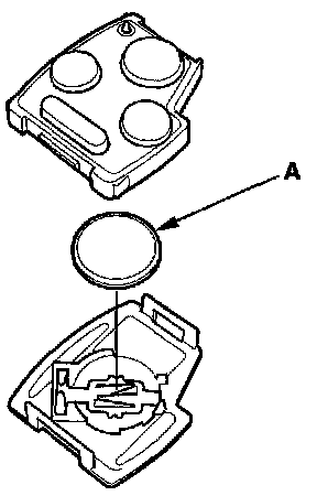 4. Replace the transmitter battery (A) with a new one, and try to lock and unlock the doors with the transmitter by pressing the lock or unlock button five or six times.