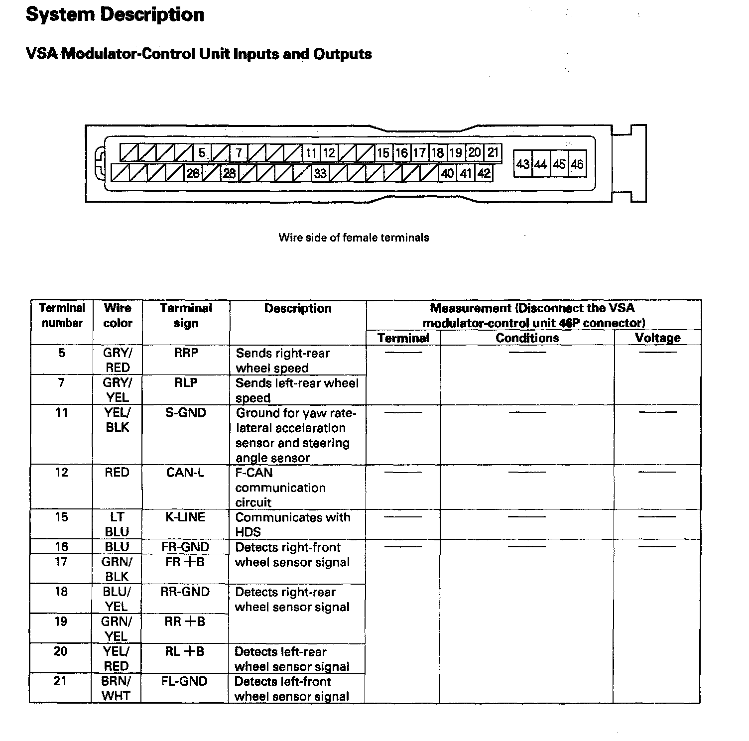VSA Modulator-Control Unit Inputs and Outputs (Part 2):