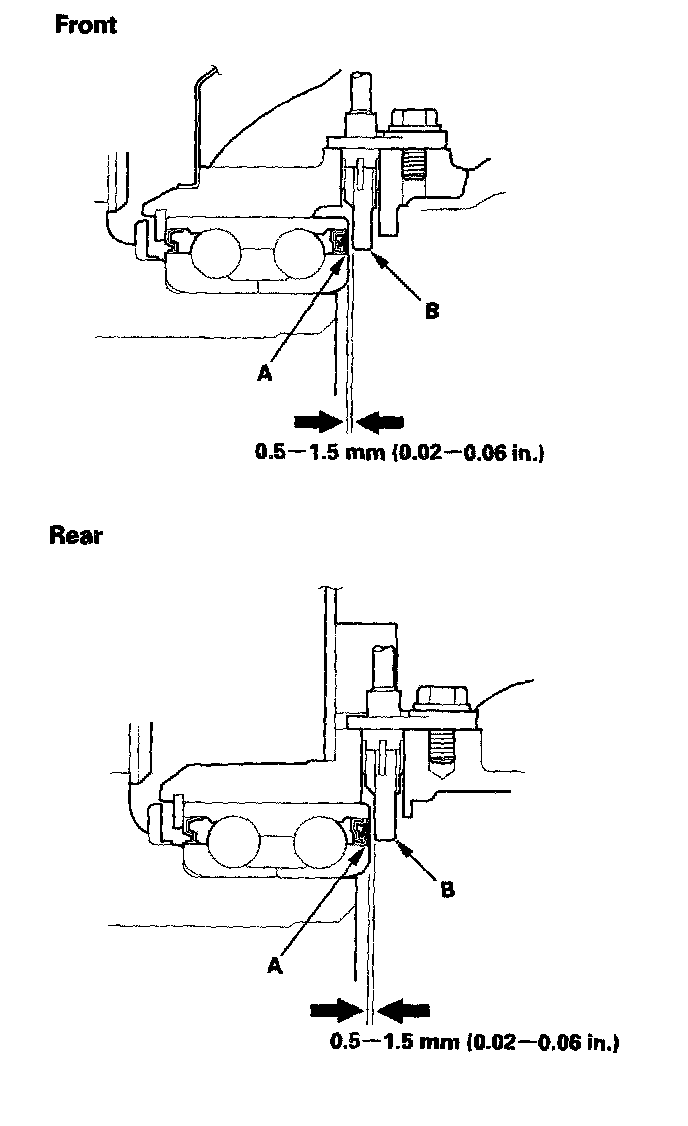 Rear: 0.5-1.5 mm (0.02-0.06 in.)
