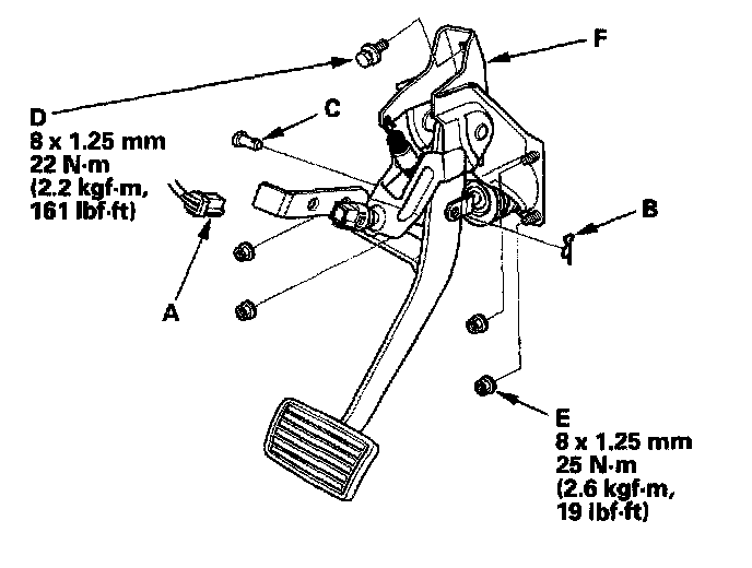 4. Remove the brake pedal with bracket (F).