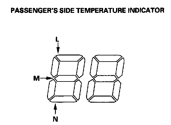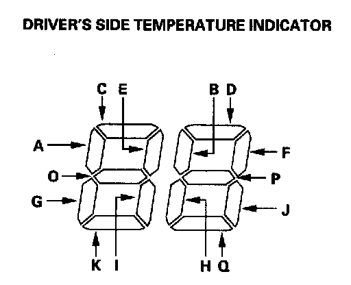 The temperature display indicates single or multiple DTCs. If indicator segments A, C, E, G, I, L, and 0 are on at the same time, there may be an open in the common ground wire. If no DTCs are present, the indicator remains blank.