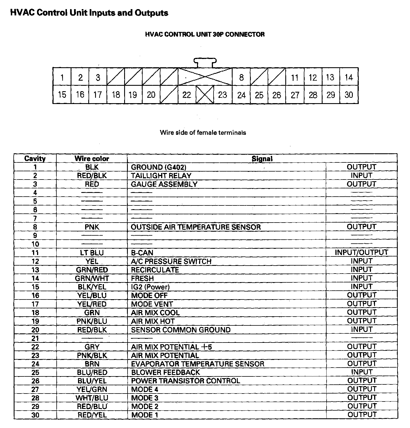 Climate Control Unit Inputs And Outputs: